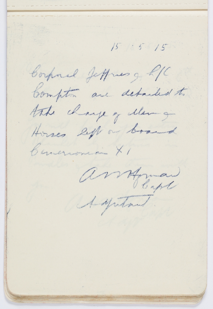 Corporal Jeffries & L/C Compton are detailed to take charge of Men & Horses left on board Cameronian XI