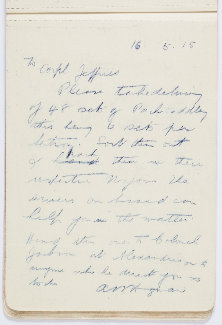 Please take delivery of 48 sets if Pack Saddlery this being 6 sets per Section. Sort them out & pack them in their respective Wagons The Drivers on board can help you in the matter.