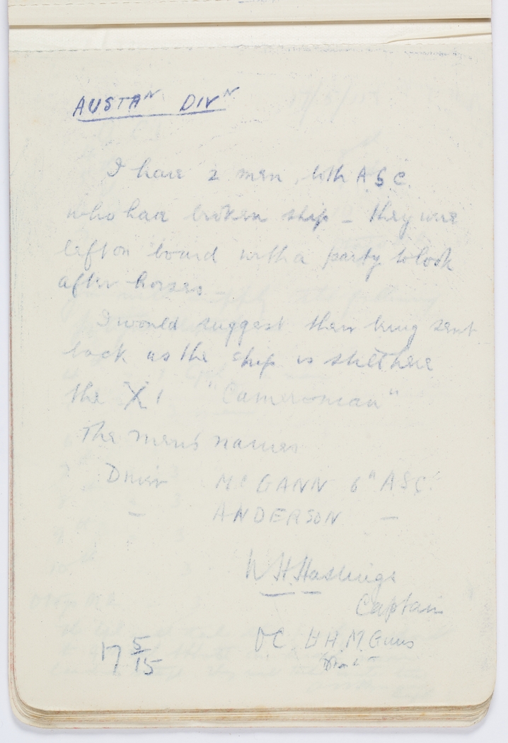 I have 2 men, both A.S.C. who have broken ship - they were left on board with a party to look after horsesĀ -