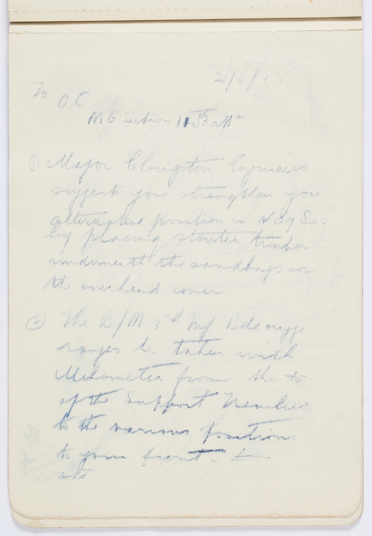 (2) The B/M 3rd Inf Bde sugge[sts] ranges be taken with Mihometer [?] from the top of the Support Trenches to the various positions to your front [indecipherable]
