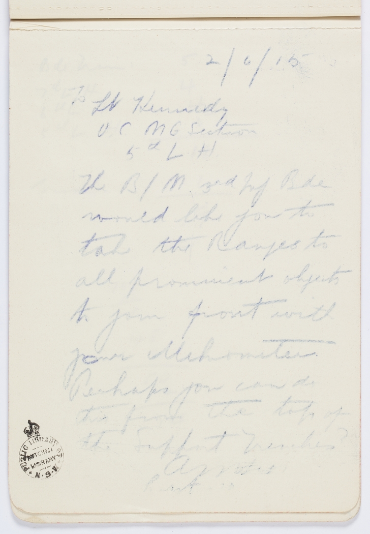 The B/M 3rd Inf Bde would like you to take the Ranges to all prominent objects to your front wall with your Mihometers [?]