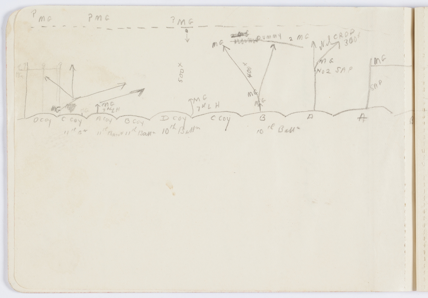 [Firing and trench diagram for 11th and 10th Battalion machine gun sections. See image.]