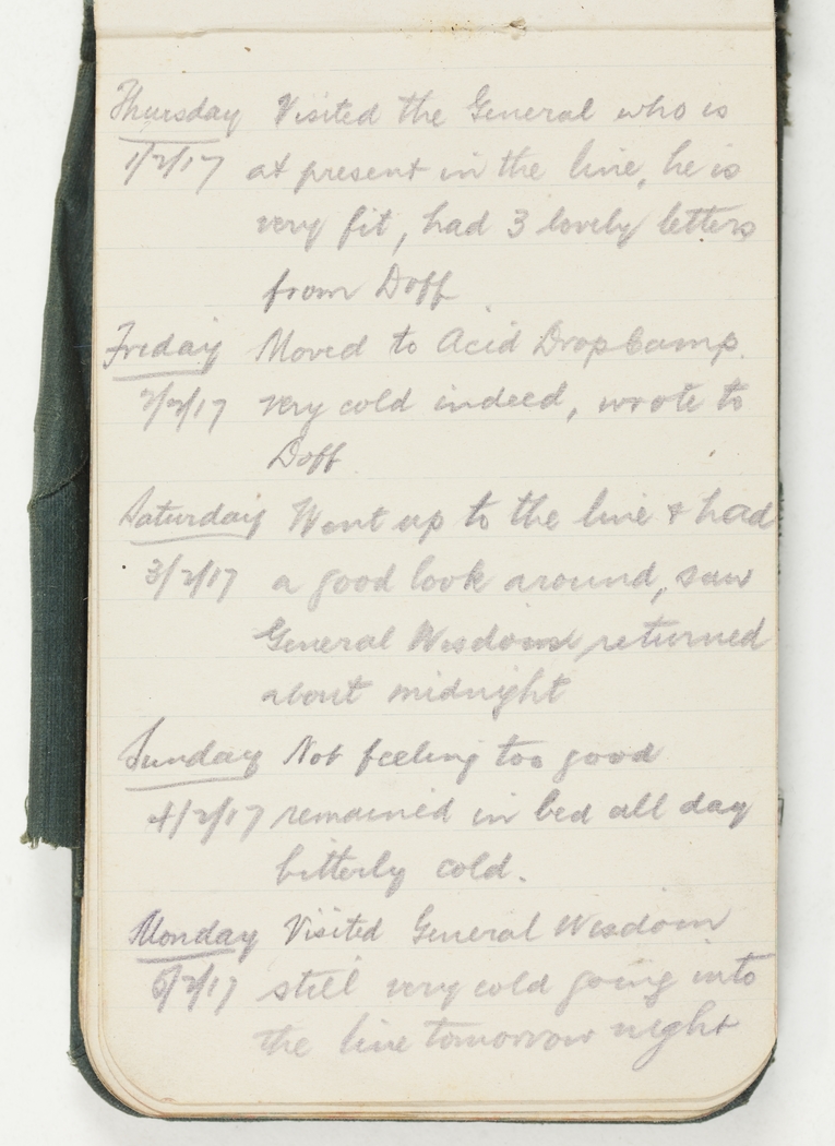 Went up the line & had a good look around, saw General Wisdom, returned about midnight.