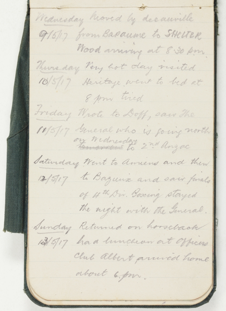 Moved by decauville [narrow gauge light railway] from Bapaume to Shelter Wood, arriving at 8.30 pm.