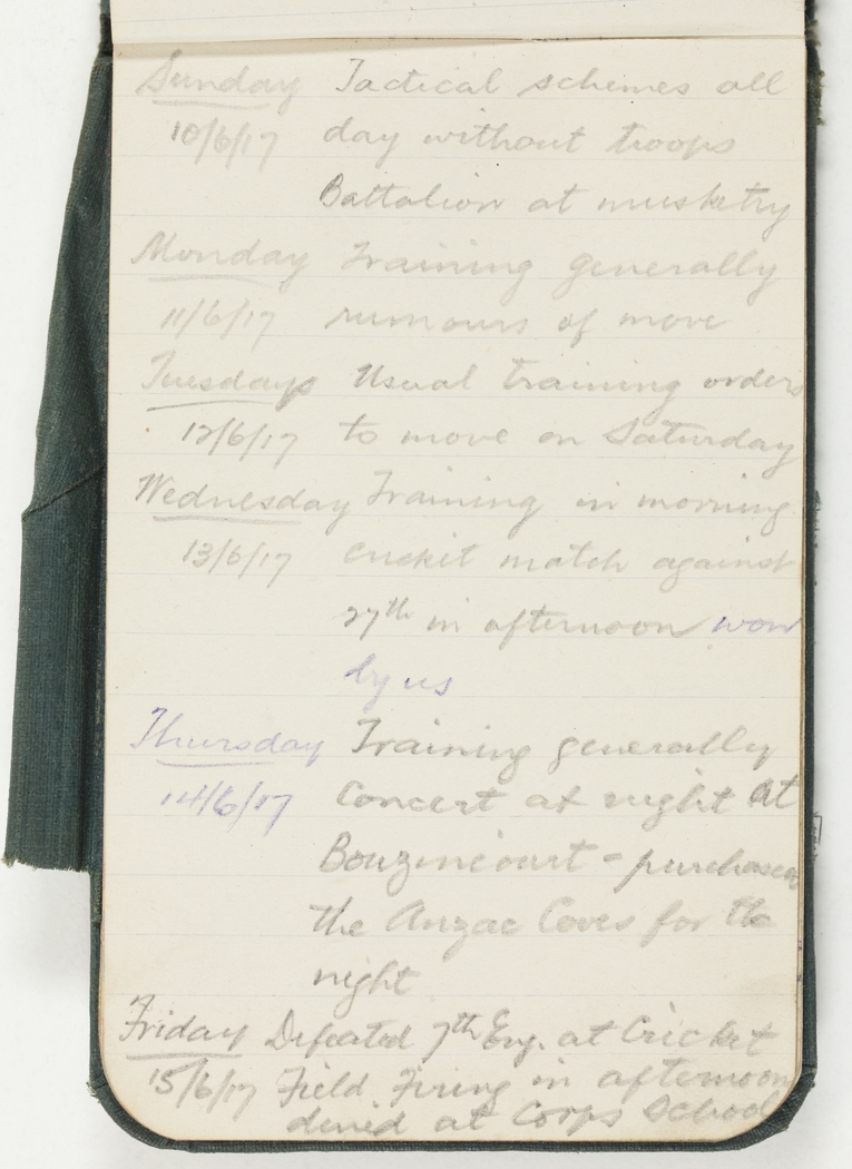 Training generally. Concert at night at Bouzincourt – purchased the Anzac Coves for the night.