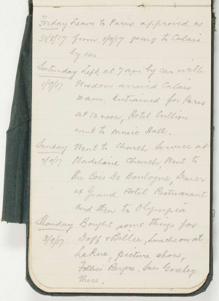 Bought some things for Doff & Billie, Luncheon at Le Rue, picture show, Follies Bergere, Saw Godley there.