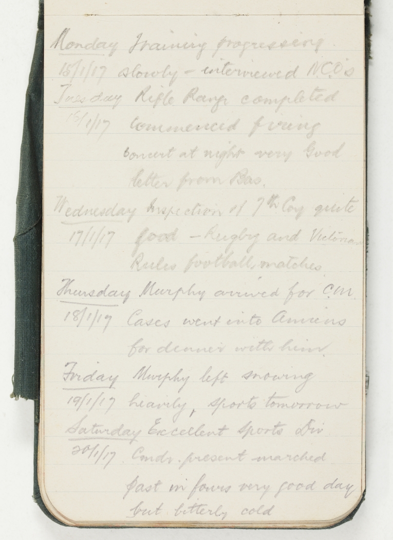 Inspection of 7th Coy quite good – Rugby and Victoria Rules football matches.