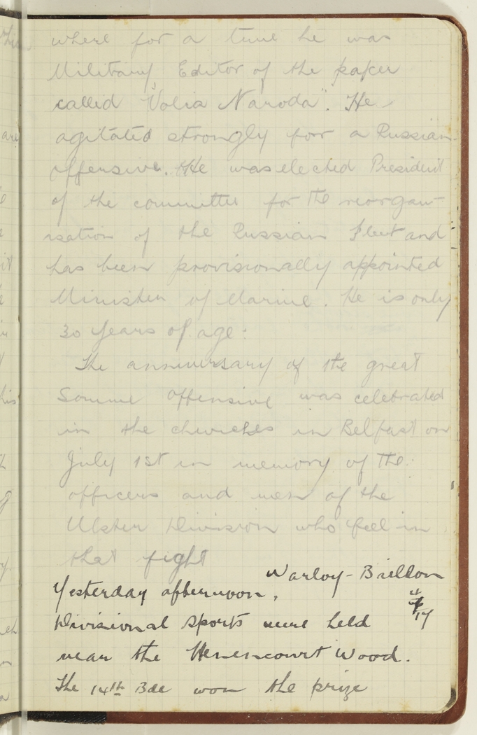 where for a time he was Military Editor of the paper called Volia Naroda. He agitated strongly for a Russian offensive. He was elected President of the committee for the reorganisation of the Russian fleet and has been provisionally appointed Minister of Marine. He is only 30 years of age.