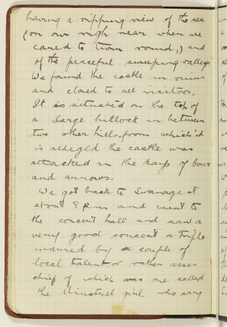 We got back to Swanage at about 8 p.m. and went to the concert hall and saw a very good concert a trifle marred by a couple of local talent or rather asses chief of which was one called the Minstrel girl, who sang