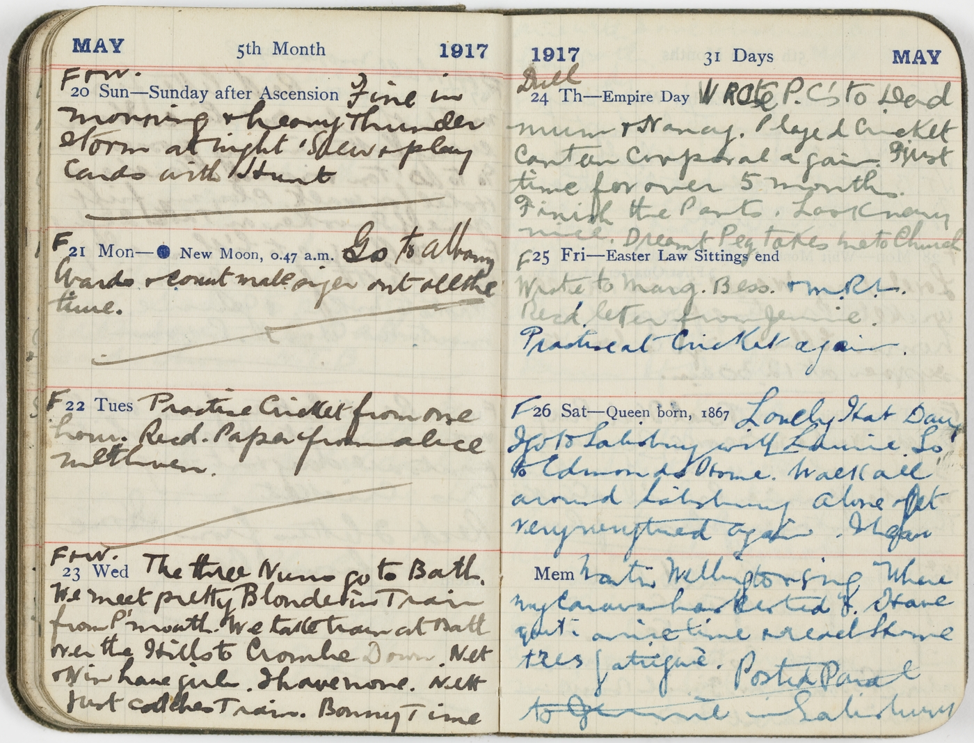F [22/5/17 Tues] Practise Cricket for one hour. Recd. paper from Alice Methven.