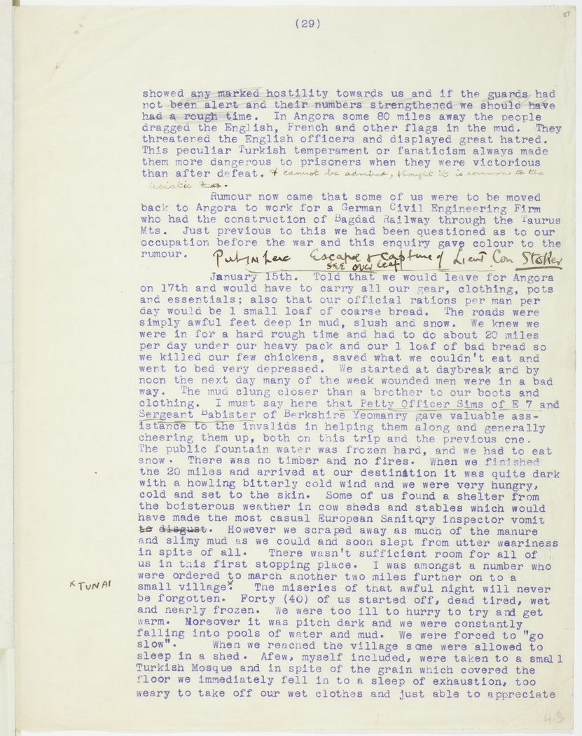 Rumour now came that some of us were to be moved back to Angora to work for a German Civil Engineering Firm who had the construction of Bagdad Railway through the Taurus Mts. Just previous to this we had been questioned as to our occupation before the war and this enquiry gave colour to the rumour.
