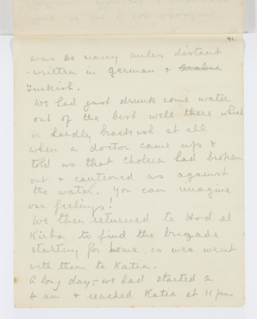 We then returned to Hod el Kirba to find the brigade starting for home, so we went with them to Katia.