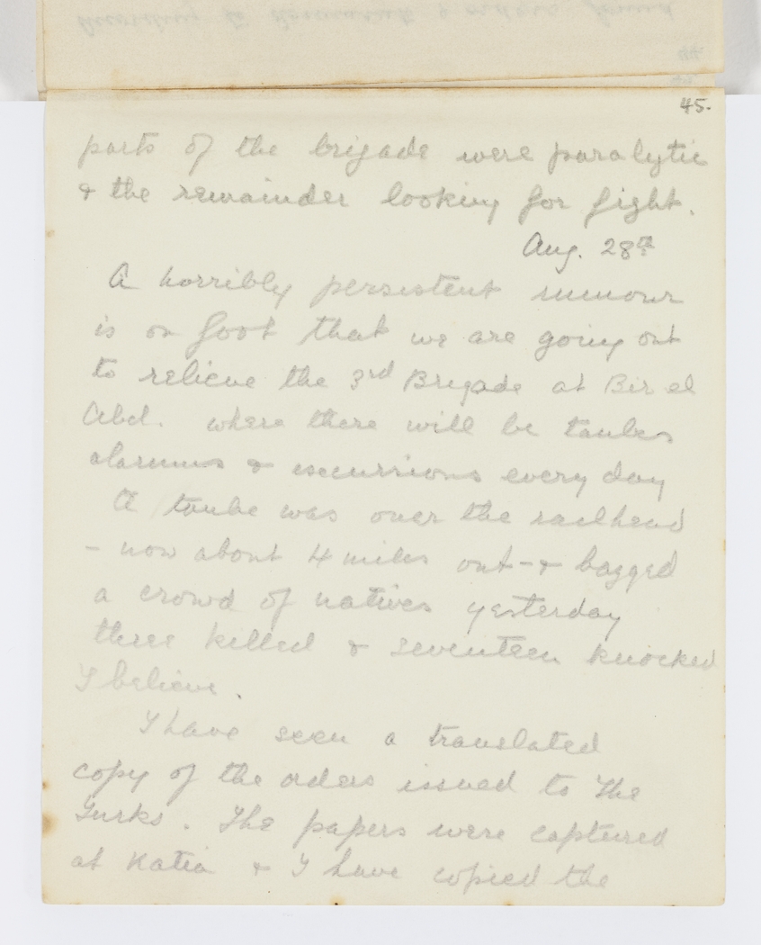I have seen a translated copy of the orders issued to The Turks. The papers were captured at Katia & I have copied the