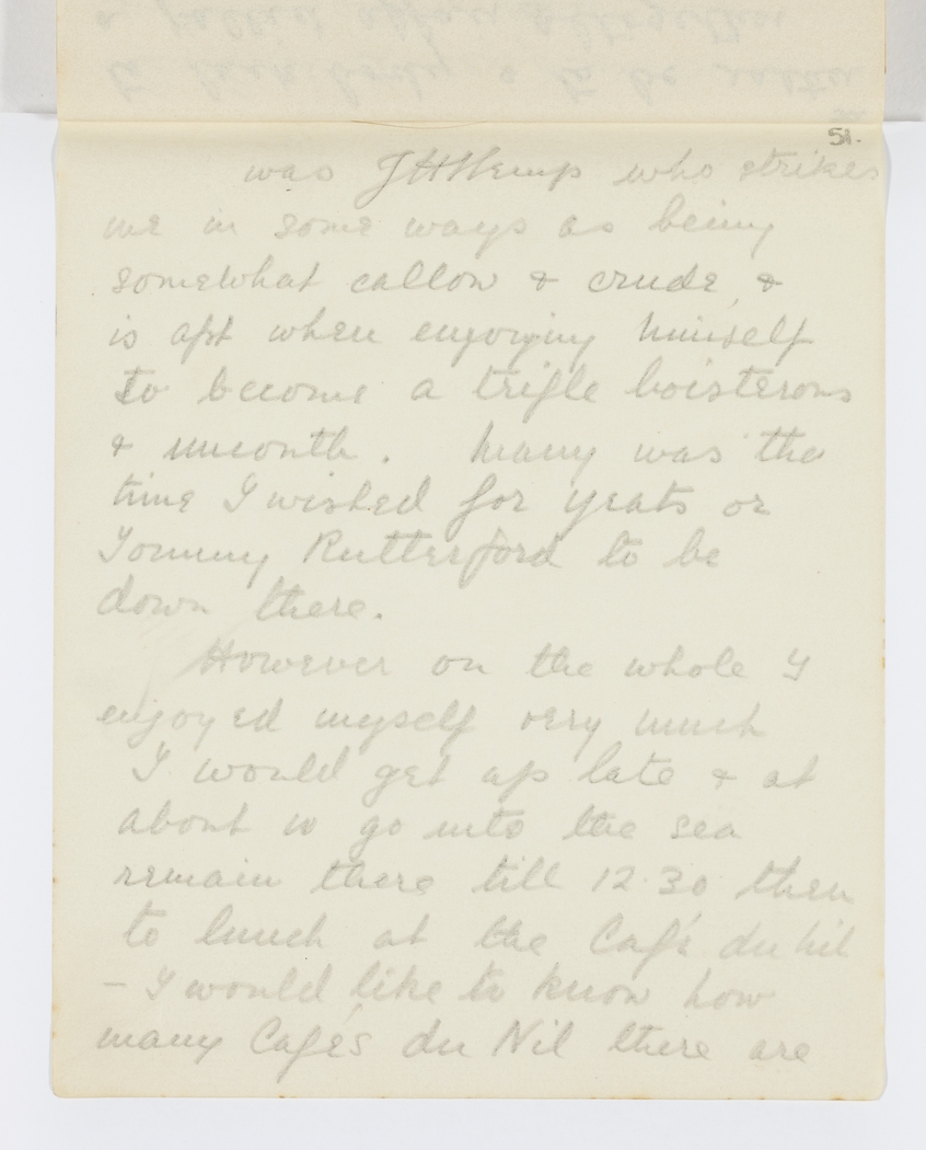 However on the whole I enjoyed myself very much. I would get up late & at about 10 go into the sea remain there till 12.30 then to lunch at the Café du Nil €“ I would like to know how many Café's du Nil there are