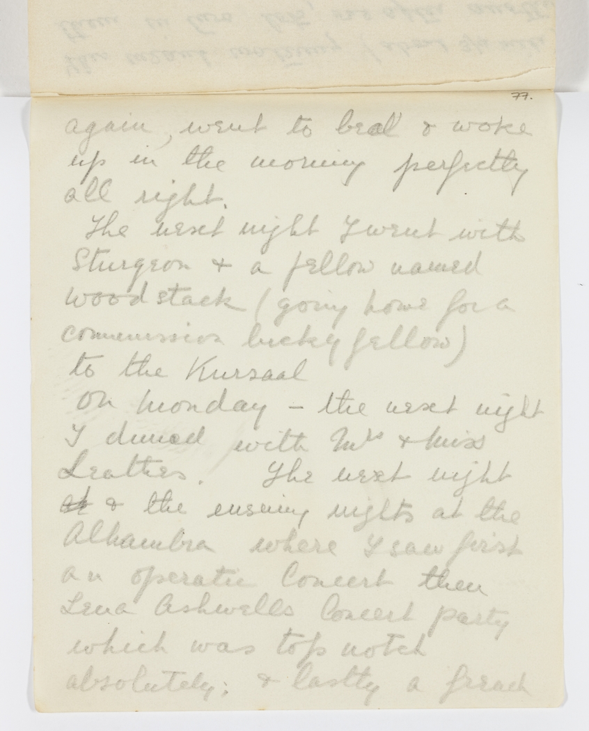 The next night I went with Sturgeon & a fellow named Woodstack (going home for a commission lucky fellow to the Kursaal
