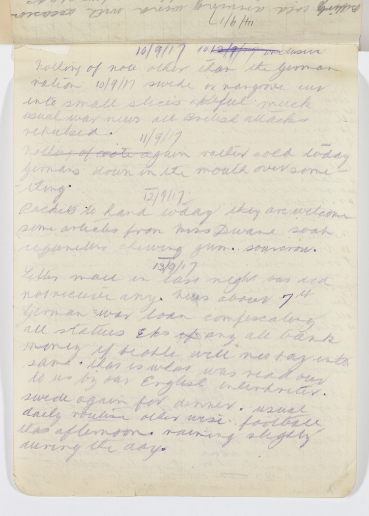 Nothing of note other than the German ration 10/9/17 swede or mangrove [?]