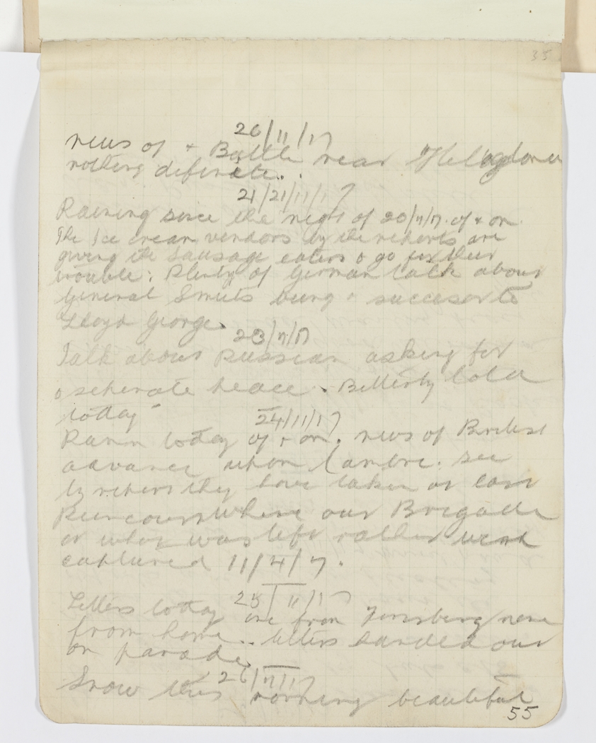 Raining since the night of 20/11/17 of & on The ice cream vendors by the reports are giving the sausage eaters a go for their trouble. Plenty of German talk about General Smuts being a succesor to Lloyd George