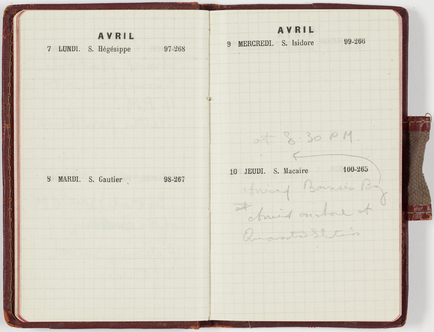 [Avril 10 Jeudi]Arrived Barnse's Bay at 8.30 p.m. Arrived on shore at Quarantine Station.