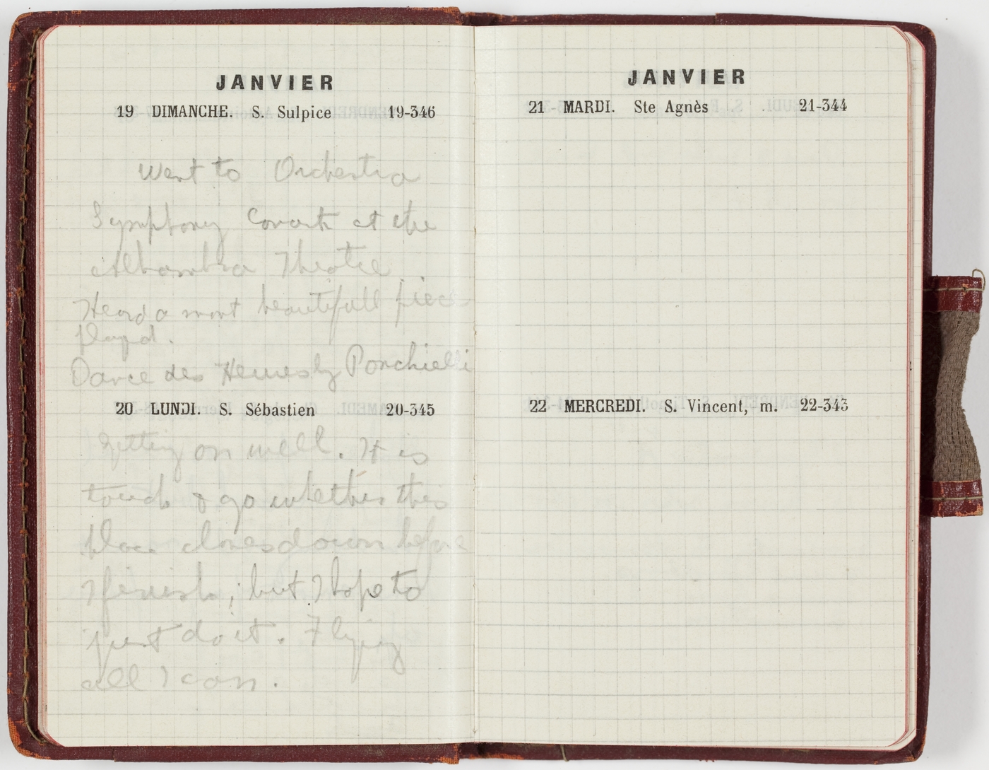 Went to Orchestra Symphony Concert at the Alhambra Theatre. Heard a most beautifull piece played. Dance des Heures by Ponchieli.