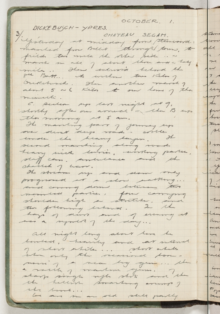 The marching part of journey up over dust deep roads – cobbles under the heavy layers. The second marching along roads heavy with lorries, working parties, staff cars, ambulances and the chattels of war.
