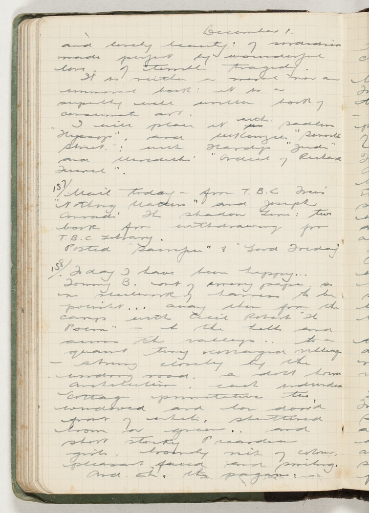 Today I have been happy. .. Tommy B. out of emery paper, so no steelwork of harness to be polished…away then from the camp with Cecil Robert's "26 Poems" – to the hills and across the valleys.. to a quaint tiny cottaged village – strung closely by the wooding road, a doll house architecture, each individual cottage primitative two windowed and low door'd front of white, shuttered brown or green an..short stocky Picardian girls, brownly rich of colour, pleasant faced and smiling. And oh, the pagans: three estaminets and no church.