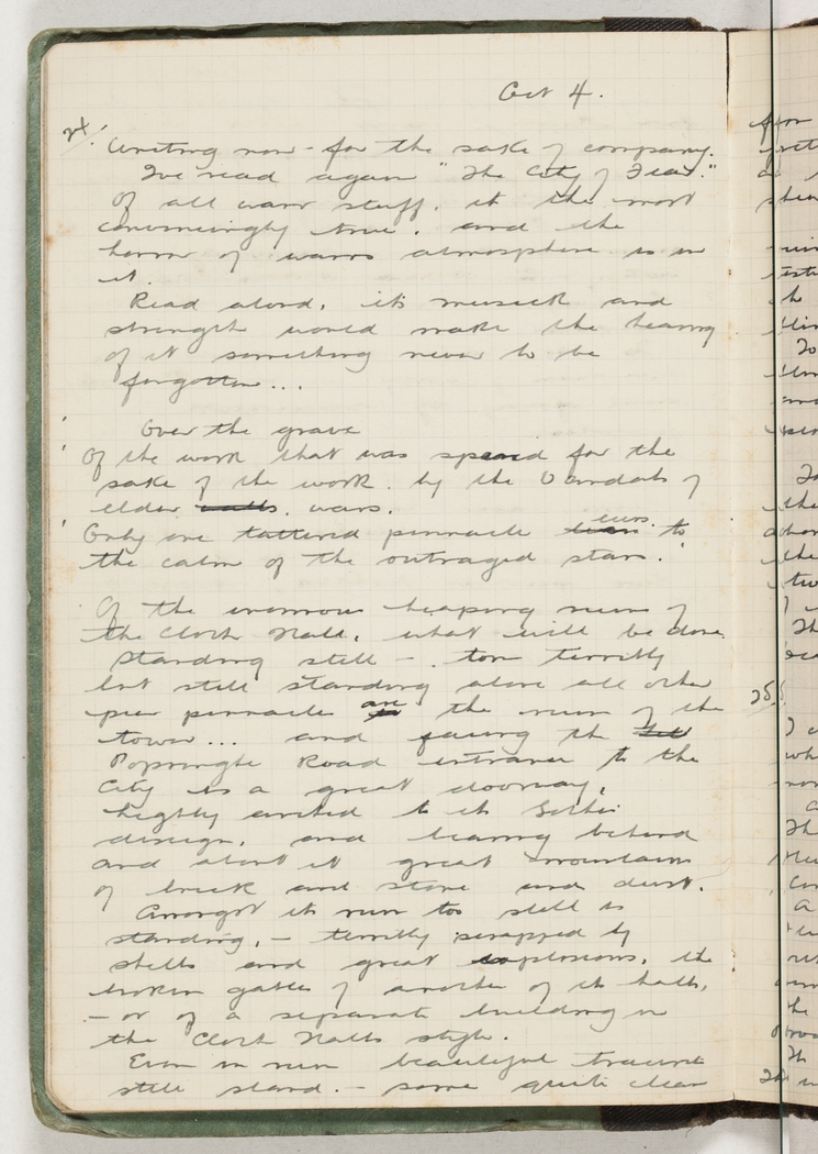 Writing now – for the sake of company. I've read again "The City of Fear". Of all war stuff, it the most convincingly true, and the horror of warr's atmosphere is in it.