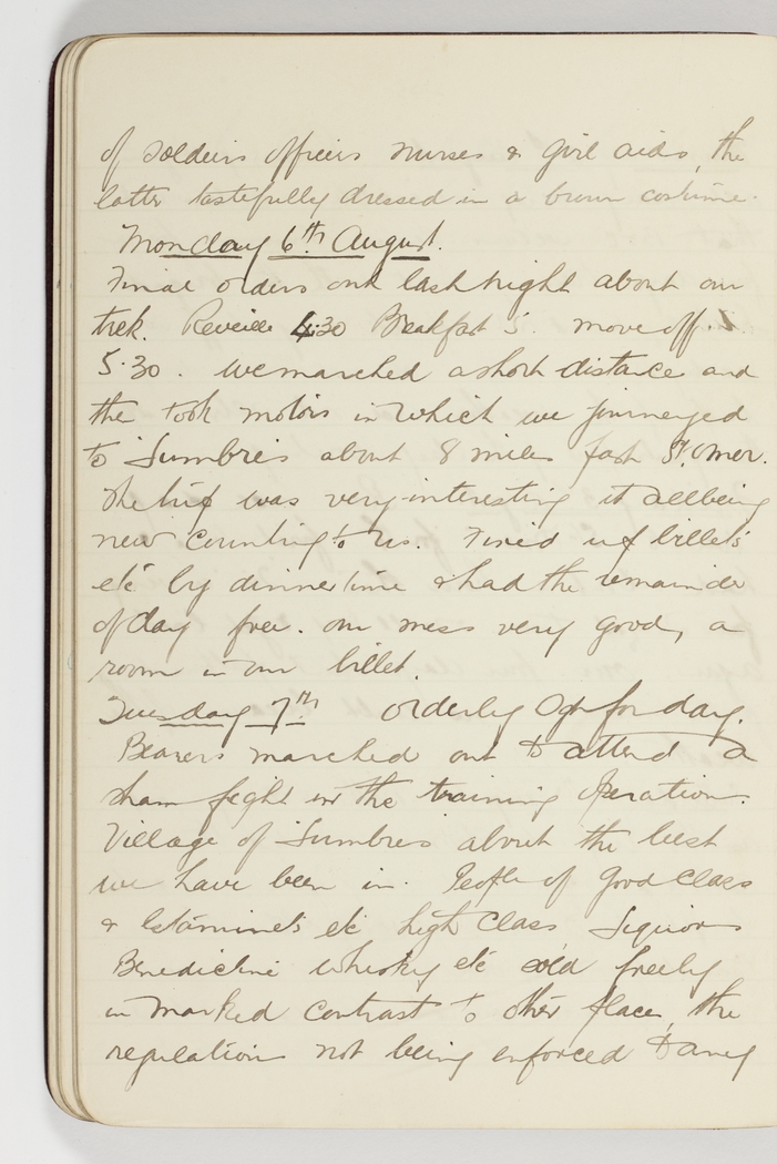 Orderly Sgt for day. Bearers marched out to attend a sham fight in the training operations. Village of "Lumbres" about the best we have been in. People of good class & estaminets etc high class Liquors Benedictine whisky etc sold freely in marked contrast to other places, the regulations not being enforced to any
