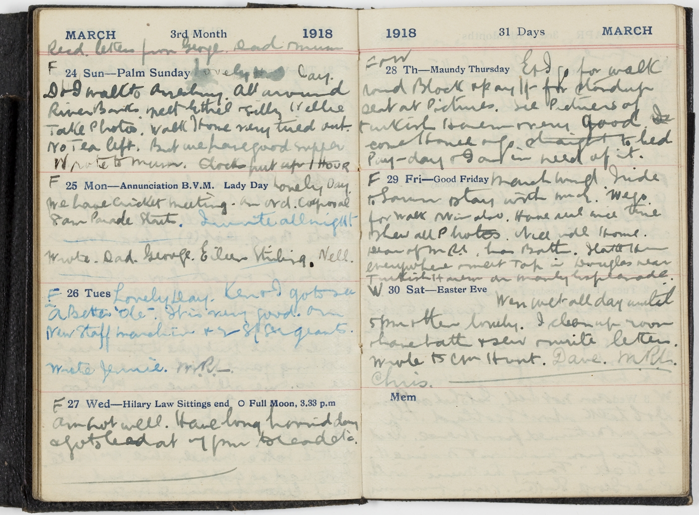 No Tea left. But we have good supper. Wrote to Mum. Clocks put up 1 Hour