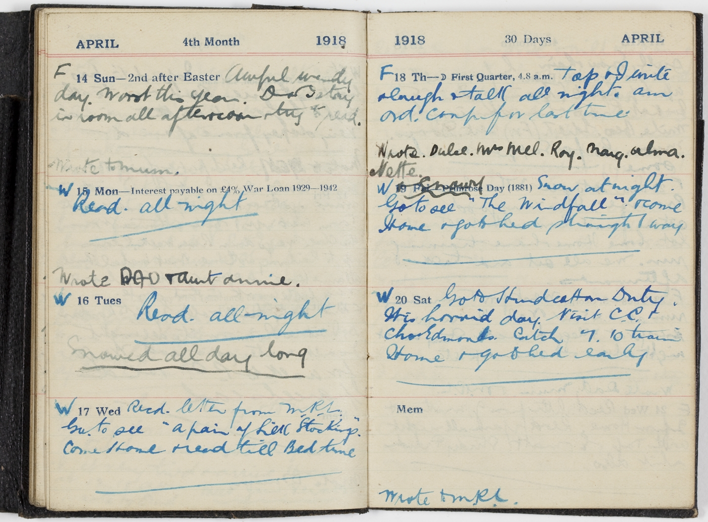 Wrote to Mum.