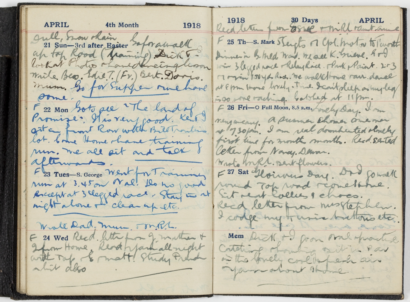 Go to see "The land of Promise". It is very good. Ken & I sit in front Row with Bill Tronters lot. Come Home & have training run. We all sit and talk afterwards.