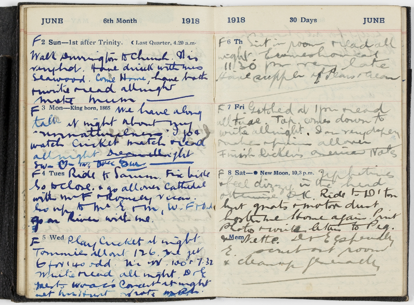 We have a long talk at night about my ["unnaturalness"?] I go & watch cricket match & read all night. Dream all night SW - [sketch of heart] –ING [indecipherable]