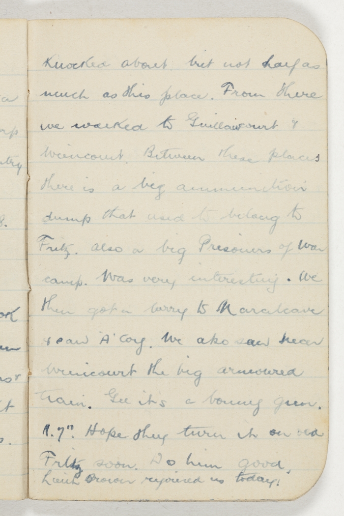 Did a bit of manoeuvring around in the morning. Got the car & went to Le Treport, passing thro a few small villages like (la Bassee, Lancheres, Bruteeles, Morlay,Sarlenelle & bigger villages like Noyelles-sur-Mer, St Valery, [indecipherable] Louise, & near Ault & Eu & passing also thro Mer. Got there about 4pm. Went straight to the Hotel de la Plage & got a couple of rooms, had tea & then out for a stroll. It rained off & on all the afternoon. Went to the pictures in the evening & back home to bed.