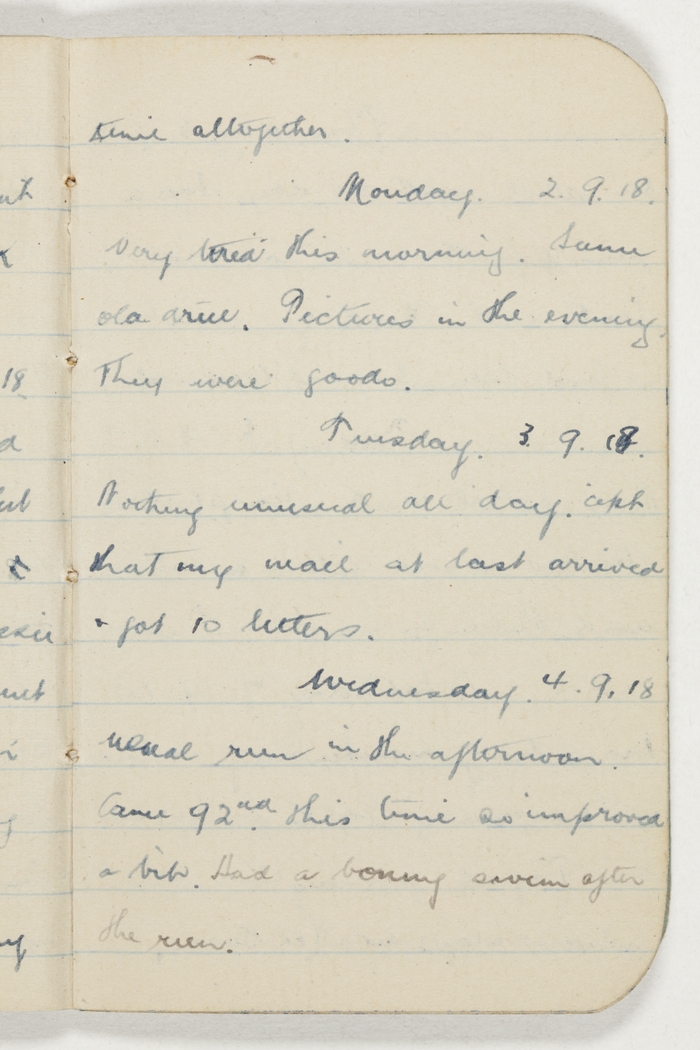 Got up at 9.30am after a delightful sleep. Went to Aunt Probert but she is ill in bed & the only person I saw in the house was Mary. Uncle Bill was out for a walk so I didn't see him either. Got back to Aunt Maggies, had lunch & then caught the 2.5pm train. Had a good trip. Had to change twice that was all. Arrived about 9.30 at the hotel. Got my room went for a stroll then to bed.