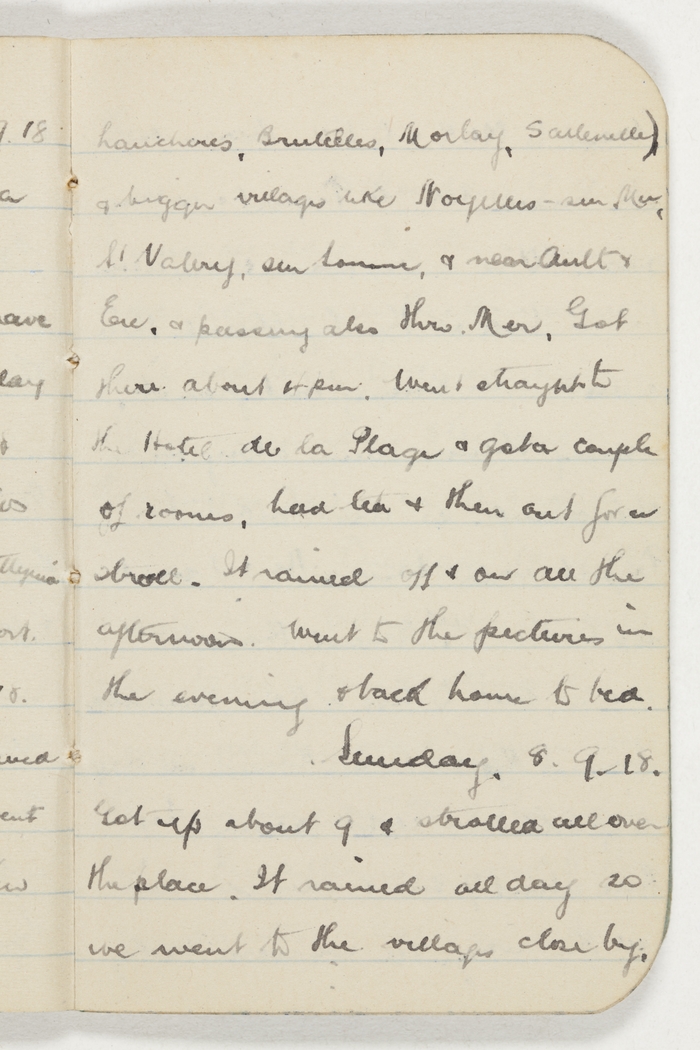 before I was out of bed. We both went for a bath this morning. Went to Horseferry Rd & bank with Bill. Then to lunch. Rushed off & caught the 1.30pm to Reading. Went round to the hotel & met Ada. Went into the park for a walk & it rained. Last time I was there it rained. Caught the 5.10pm back & went out for Vi, at 7.30. Took her to see Marie Lohr in Nurse Benson & was late as usual for the start. Liked the show immensely.