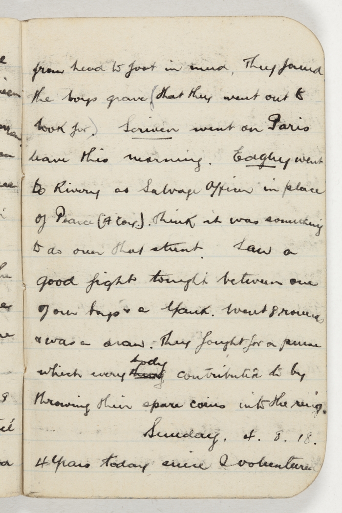 Stayed there till 3.30pm. We were the Reserve Coy so until then we had nothing to do. Saw hundreds of prisoners & hear that our boys are doing exceptionally well. Do us. We moved up at 3.30pm & had to maintain the main road till midnight & then we move into a bank north of Warfusee Abincourt & Lamotte en Santerre. Everything went well with our boys. There was very little work in the air by Fritz. Our boys walked straight thro him on the ground. Captured guns, as train load of troops coming to this front & have generally hit him hard.