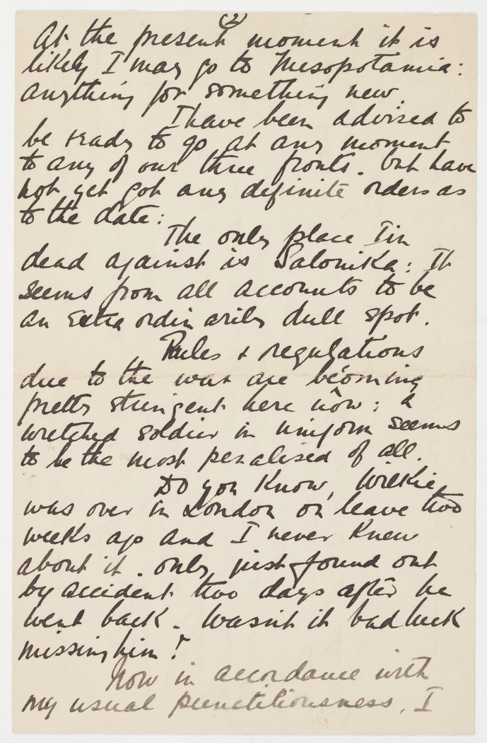 At the present moment it is likely I may go to Mesopotamia: anything for something new.