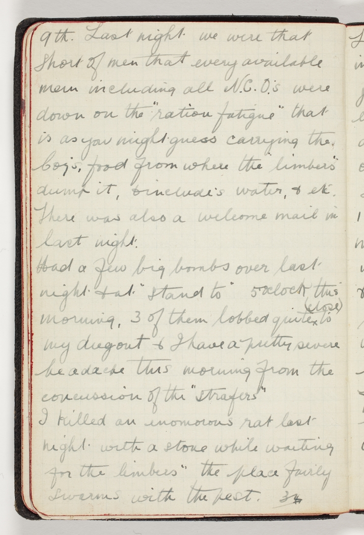 I killed an enormous rat last night with a stone while waiting for the limbers the place fairly swarms with the pest.