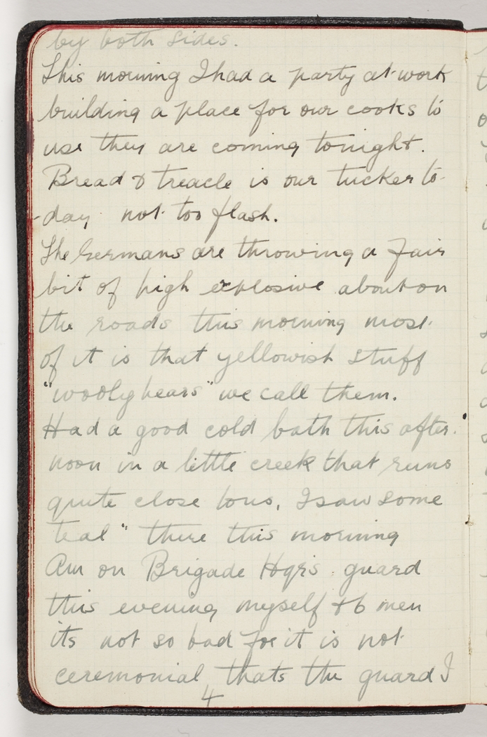 Had a good cold bath this afternoon in a little creek that runs quite close to us, I saw some teal there this morning. Am on Brigade Hqr's guard this evening myself & 6 men its not so bad for it is not ceremonial thats the guard I