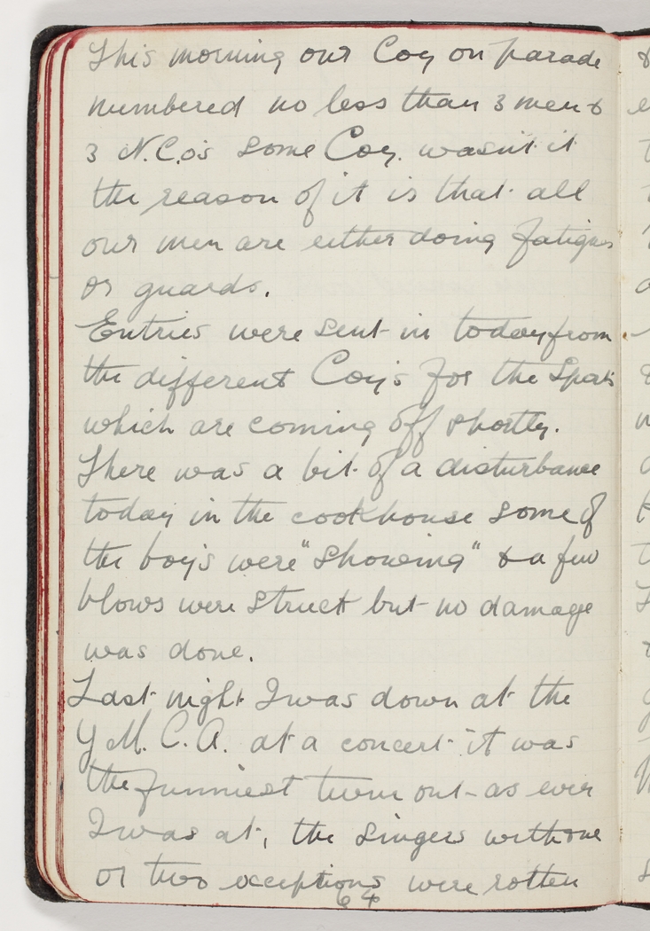 Last night I was down at the Y.M.C.A. at a concert it was the funniest turn out as ever I was at, the singers with one or two exceptions were rotten
