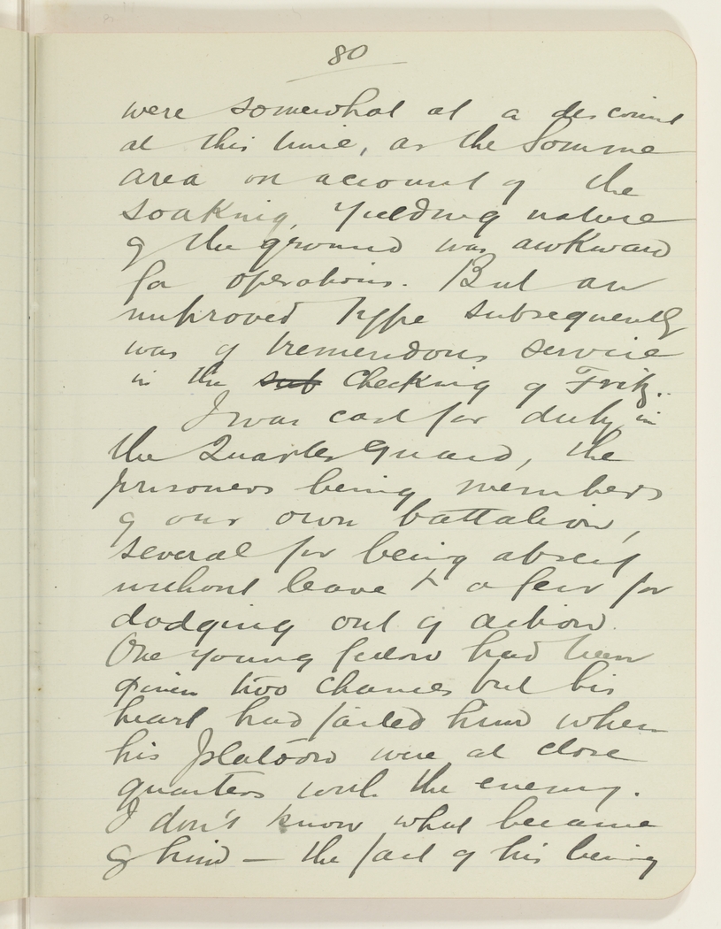I was cast for duty in the Quarter guard, the prisoners being members of our own battalion, several for being absent without leave & a few for dodging out of action.