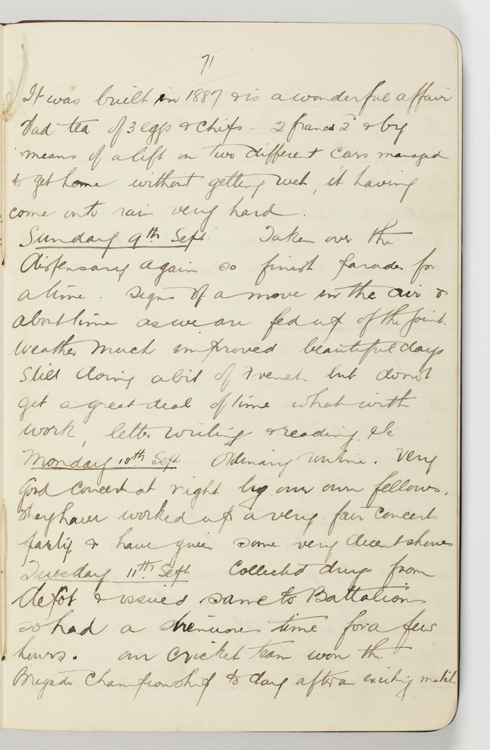 Collected drugs from depot & issued same to Battalions so had a strenuous time for a few hours. Our cricket team won the Brigade Championship today after an exciting match.
