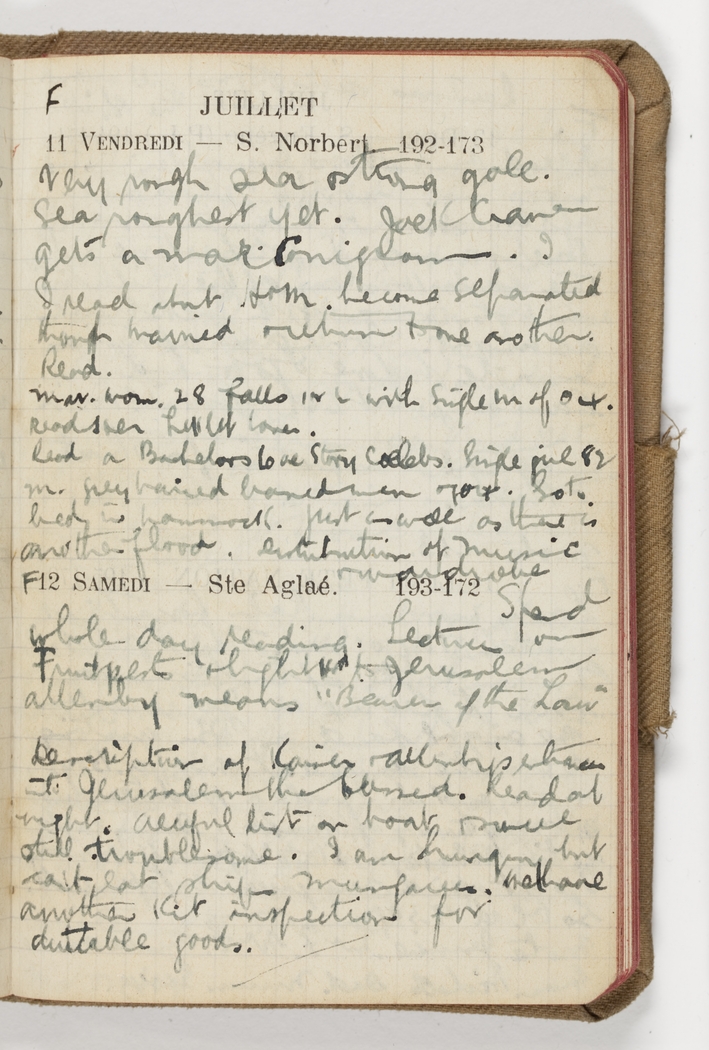 Description of Kaiser & Allenby's entrances to Jerusalem the blessed. Read at night. Awful list on boat & swell still troublesome. I am hungry but can't eat ships munfaces[?]. We have another kit inspection for dutiable goods.