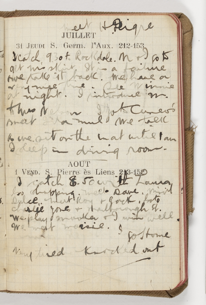 Catch 9.30 to Rockdale. M & I got to get M's skirt. It is a failure & we take it back. We have a very nice time. See Winnie at night. I introduce W. to Mrs Nelson. I go to Cuneo's & meet Ida Mul. We talk so we sit on the mat until 1 am. I sleep in dining room.
