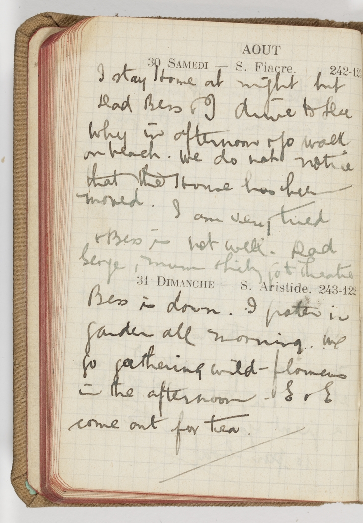 Bess is down. I potter in garden all morning. We go gathering wild-flowers in the afternoon. E & E come out for tea.