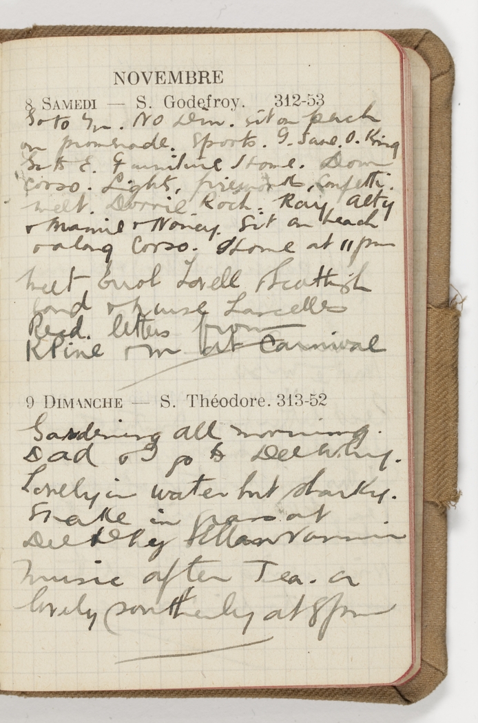 Go to M. No Din, sit on perch on promenade. Sports. I save O King. Go to E. Furniture Home. Down Corso. Lights, fireworks, confetti. Meet Dorrie, Roch, Ray, Alty & Mamie & Nancy. Sit on beach & along Corso. Home at 11 pm. Meet Errol Lovell & Scottish band & Nurse Lascelles. Recd letters from R Pine & M at Carnival.