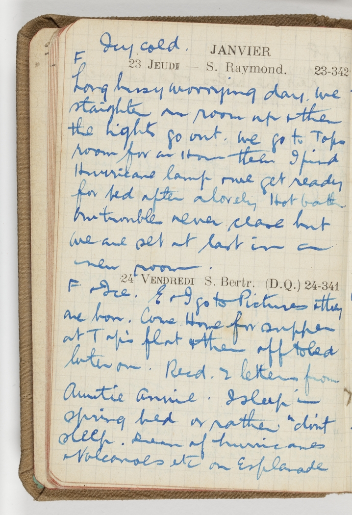 Long busy worrying day. We straighten our room up & then the lights go out. We go to Tops room for an hour then I find Hurricane lamp & we get ready for bed after a lovely Hot bath. Our troubles never cease but we are set at last in a new room.