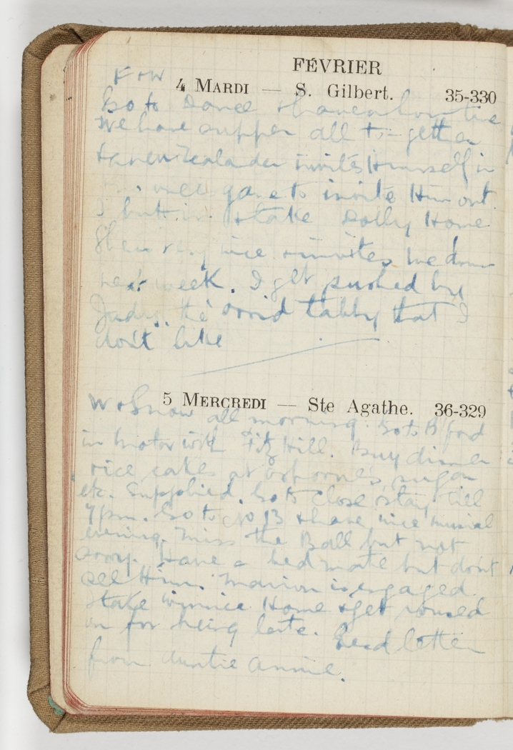 Go to Dance & have a low time. We have supper all to-gether & New Zealander invites himself in [indecipherable] game to invite Him out. I butt in & take Dolly Home. She is very nice & invites me down next week. I get pushed by Judy, the 'orrid tabby that I don't like.