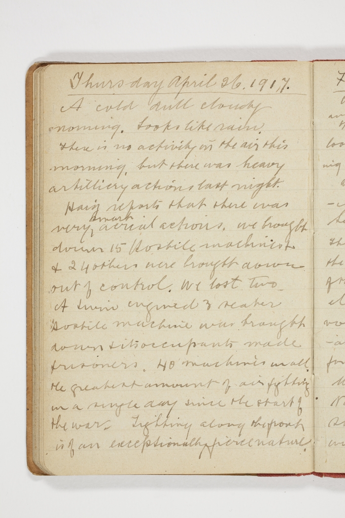 A cold dull cloudy morning. Looks like rain. There is no activity in the air this morning, but there was heavy artillery action last night. Haig reports that there was very smart aerial actions, we brought down 15 Hostile machines & 24 others were brought down out of control. We lost two.