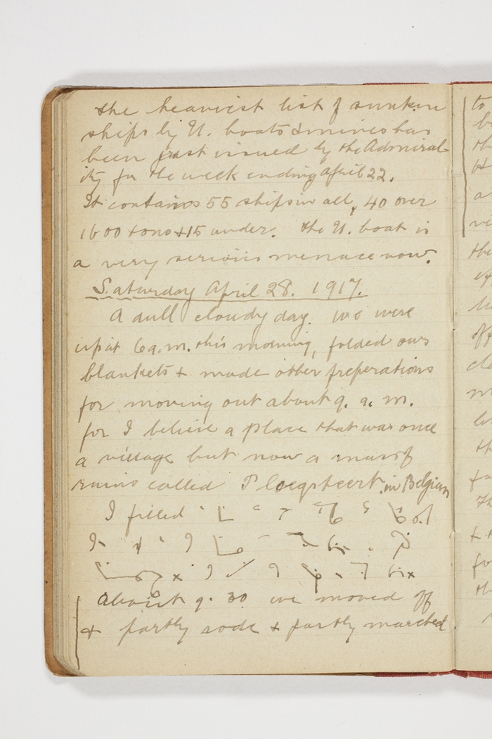 A cold dull cloudy day. We were up at 6 a.m. this morning, folded our blankets and made other preparations for moving out about 9 a.m. for I believe a place that was once a village but now a mass of ruins called Ploegsteert in Belgium.