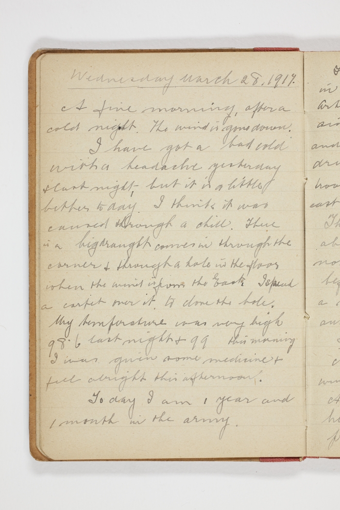 To day I am 1 year in the army. There is very little war news in Mondays papers to hand. Artillery has been active on both sides in the neighbourhood of Ypres, and the enemy have been driven out of Beaumetz. Our troops have occupied Roisel, 7 miles east of Peronne.